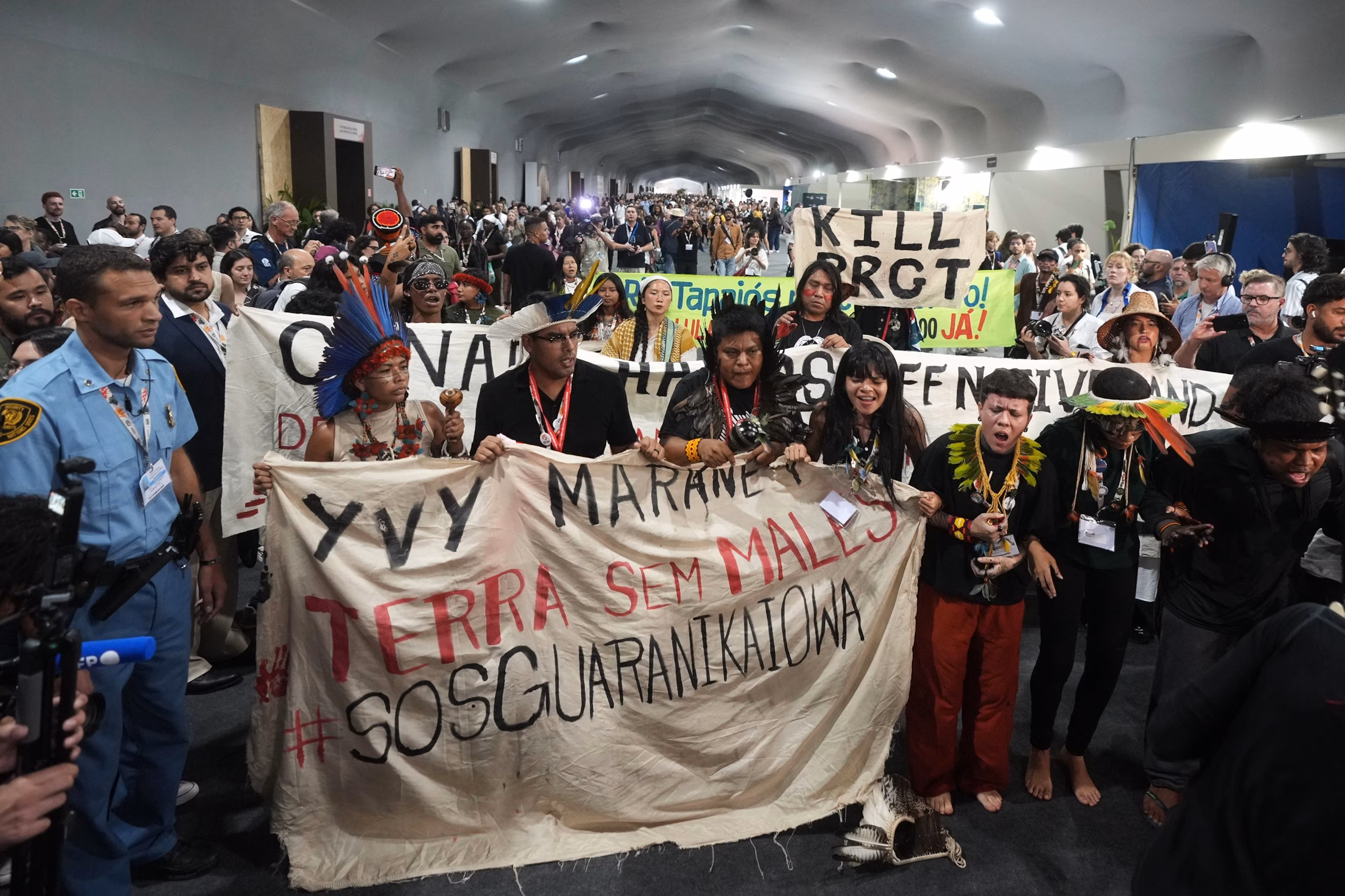 Активісти з числа корінних народів беруть участь у протесті на саміті ООН з питань клімату COP30, 21 листопада 2025 року, у Белені, Бразилія. Андре Пеннер/AP