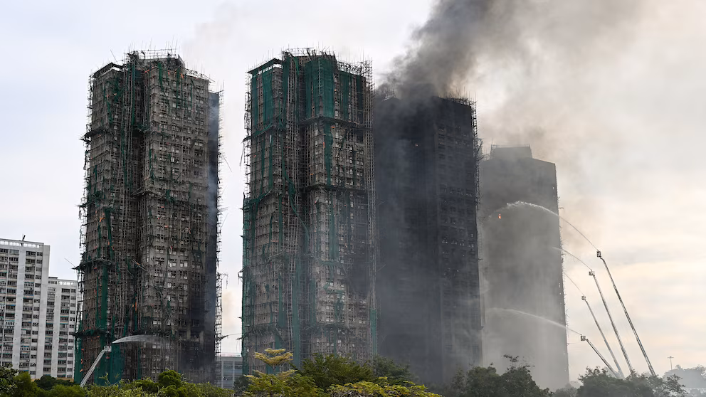 Трьох чоловіків, пов'язаних з будівельною фірмою, яка відповідала за ремонт житлового комплексу, заарештували та розслідують у зв'язку з пожежею, повідомила поліція Гонконгу під час прес-конференції рано вранці в четвер.