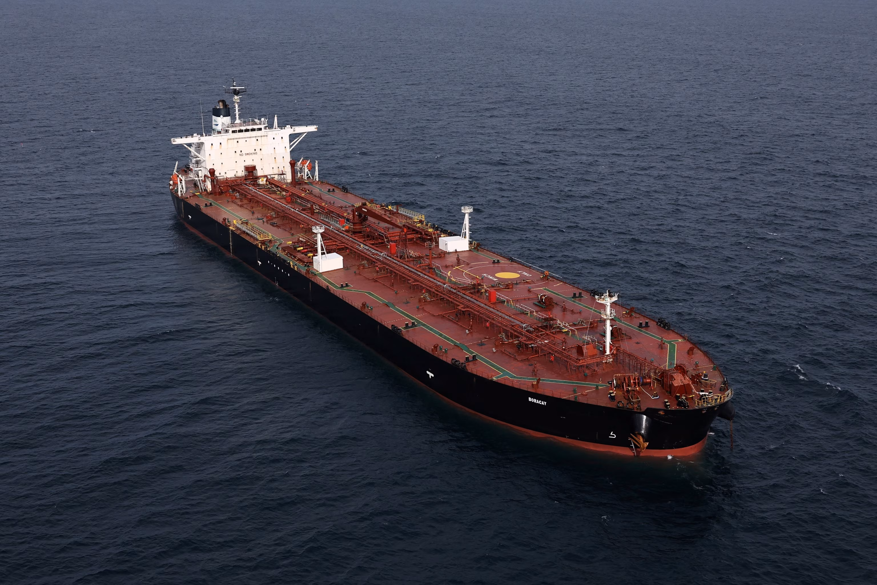 Аерофотознімок показує нібито пов'язаний з Росією нафтовий танкер під назвою «Боракай» або «Пушпа» біля узбережжя західного французького порту Сен-Назер, 2 жовтня 2025 року. Стефан Мае/Reuters