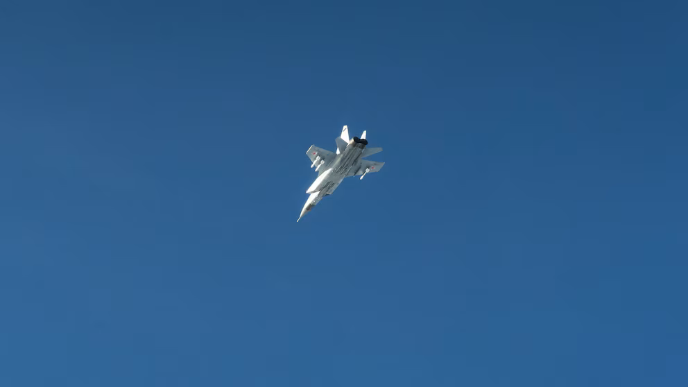 3:00 На цьому фото, опублікованому збройними силами Швеції, зображено російський винищувач МіГ-31, який брав участь у порушенні повітряного простору Естонії над Балтійським морем 19 вересня 2025 року. Збройні сили Швеції/через Reuters