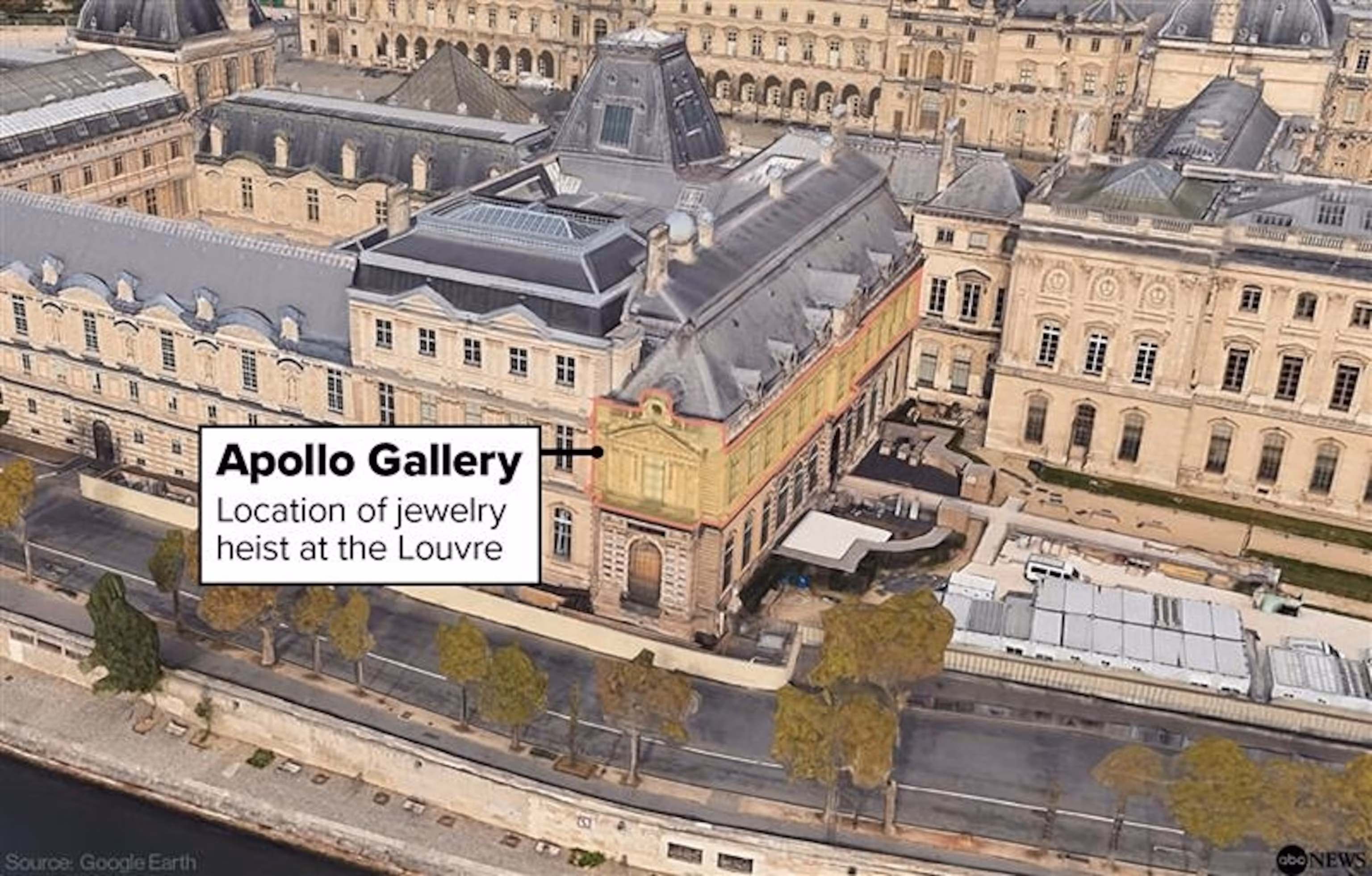 Міністр культури Франції Рашида Даті повідомила ABC News, що злодії одразу ж потрапили до двох експозицій, розбили їх та забрали «значну кількість здобичі».
