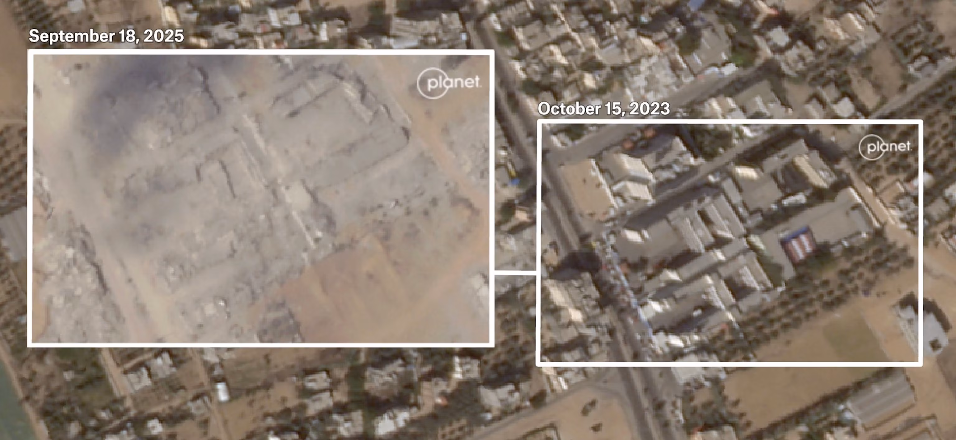 Після того, як Армія оборони Ізраїлю взяла цей район під контроль навесні 2024 року, супутникові знімки показують, що школу було зруйновано, а цього літа завали були розчищені, щоб звільнити місце для будівництва пункту розподілу допомоги для суперечливого Гуманітарного фонду Гази, який підтримується Америкою.