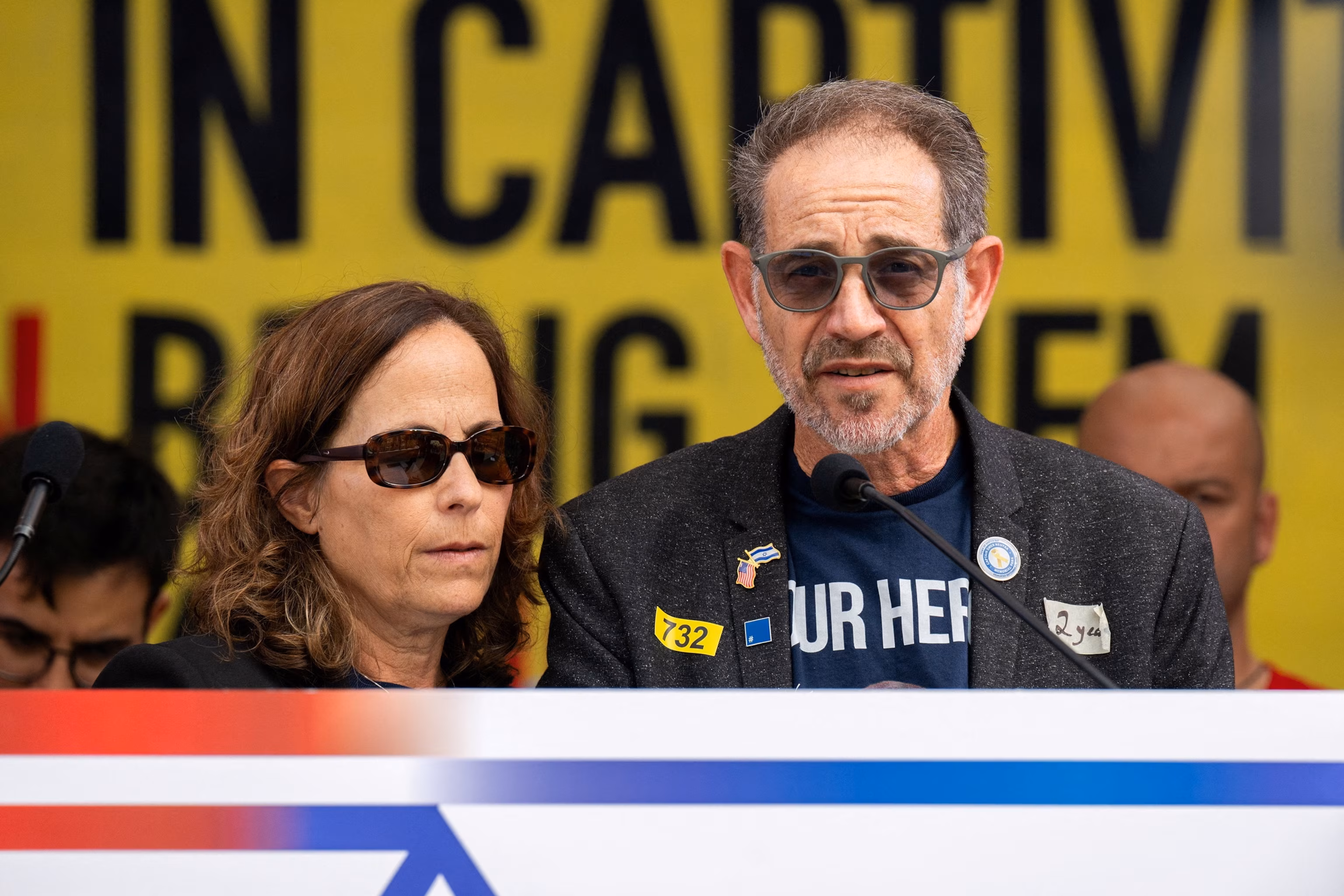 Ронен та Орна Нойтра, батьки Омера Нойтри, який загинув під час нападу ХАМАС на Ізраїль 7 жовтня 2023 року, у Центрі Кеннеді у Вашингтоні, 7 жовтня 2025 року. Аннабель Гордон/Reuters