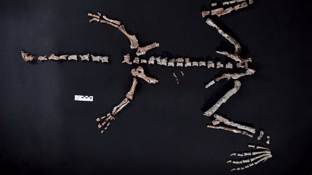 2:19 Викопні кістки Huayracursor jaguensis у палеонтологічній лабораторії Crilar в Анільяко, Аргентина, 10 жовтня 2025 року. Аргентинські вчені виявили майже повний скелет невідомого виду динозавра, який жив приблизно 230 мільйонів років тому в Андах. CONICET/AFP via Getty Images